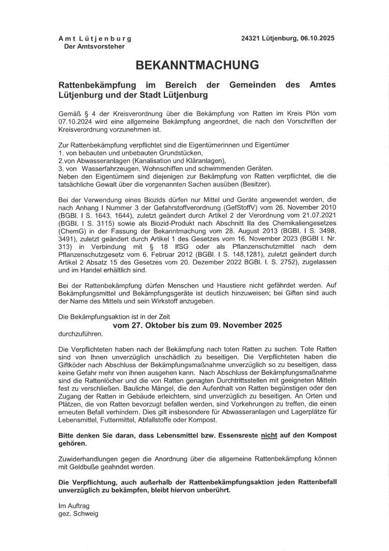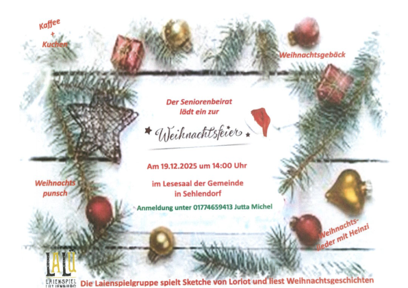 Wir würden uns sehr freuen, Sie begrüßen zu dürfen und möchten Sie bitten, Ihre Teilnahme im Gemeindebüro Tel. 04382 92234 bis zum 26.11.2025 mitzuteilen, ebenso Ihre Fahrwünsche und ob Sie Käsebrot oder Torte wünschen.